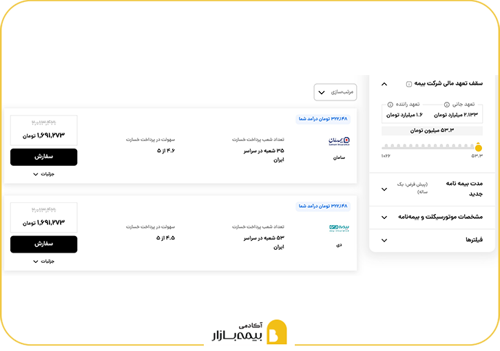 ۲. جستجو و مقایسه بیمه موتورسیکلت