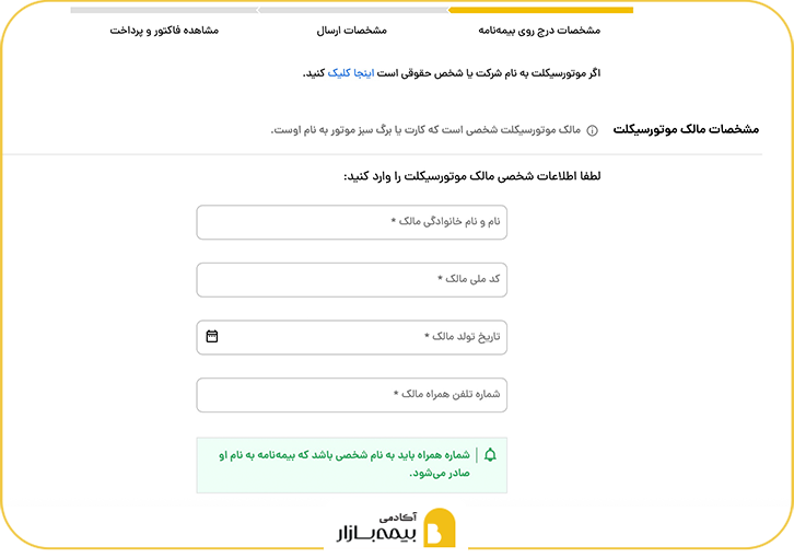 راهنمای ثبت سفارش بیمه موتورسیکلت از طریق پنل شرکای بیمه بازار