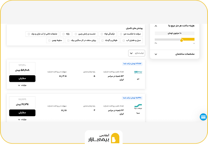 در مرحله بعد، با وارد کردن اطلاعات پایه مانند نوع ملک (مسکونی یا تجاری)، متراژ و ارزش تقریبی داراییها، فهرستی از طرحهای پیشنهادی از سوی شرکتهای مختلف بیمهای برای شما نمایش داده میشود. در این قسمت، مقایسه دقیق پوششهای بیمه آتش سوزی بسیار اهمیت دارد. هر طرح، ممکن است تفاوتهایی در میزان تعهدات، دامنه پوششها (از آتش، انفجار و صاعقه گرفته تا زلزله و ترکیدگی لوله)، و مبلغ حق بیمه داشته باشد. انتخاب درست در این مرحله، اعتبار شما بهعنوان مشاور بیمه را هم بالا میبرد.